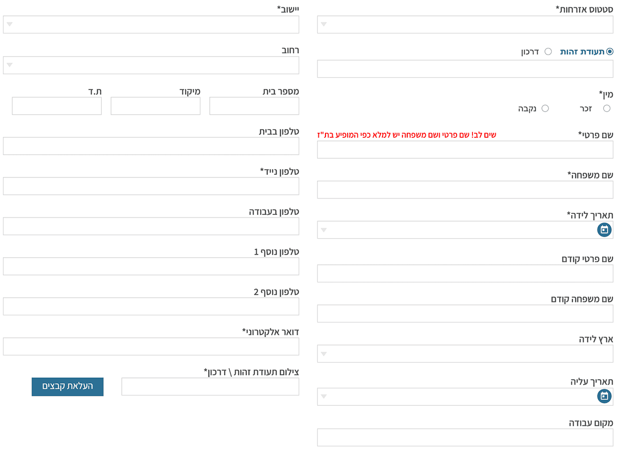 - статус гражданства* (укажите там свой статус как «ОЛЕ ХАДАШ», а не гражданин Израиля)