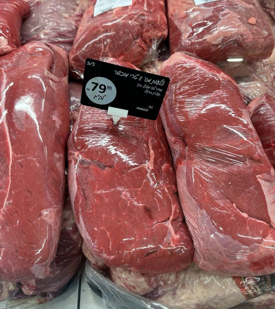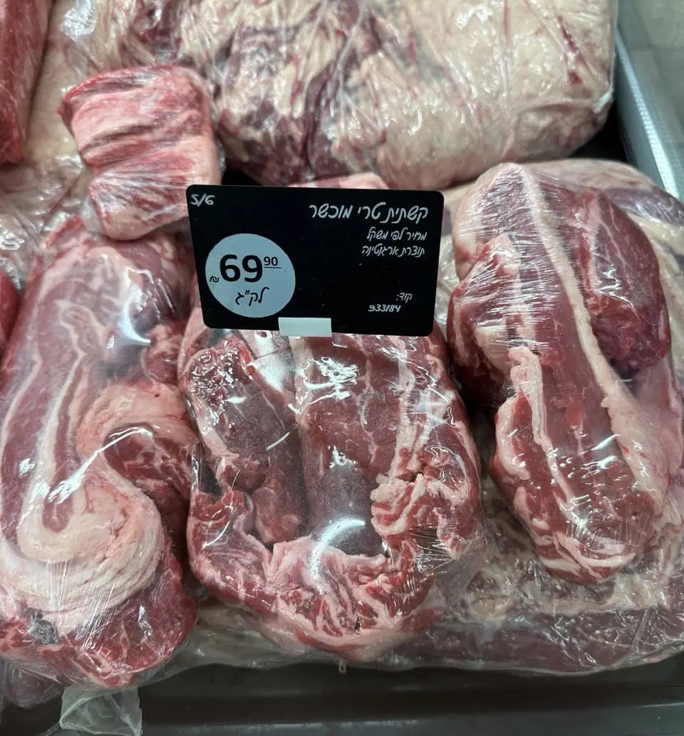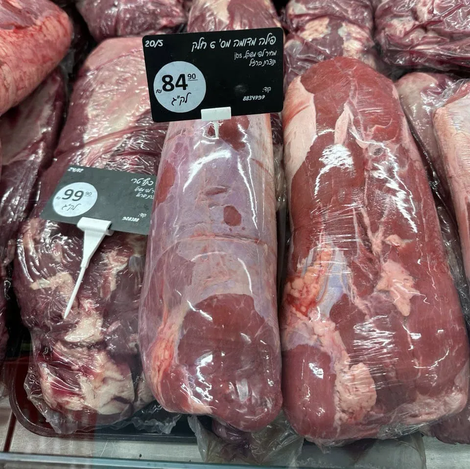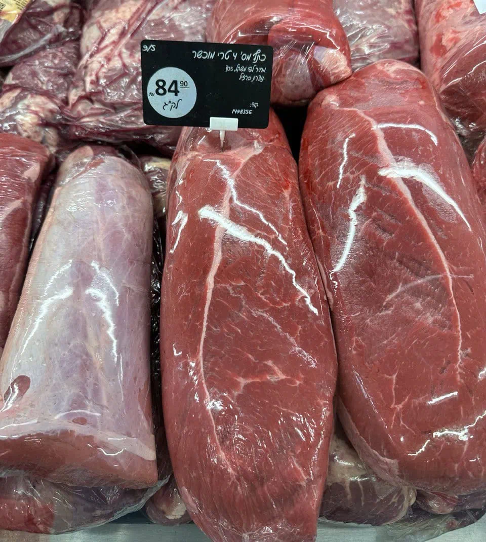 Не на каждый тип мяса я подготовил изображение, потому что в обычных сетевых супермаркетах типа Шуферсаля некоторых видов просто нет. Также вы могли заметить, что ценники не соответствуют сегодняшним ценам на мясо в Израиле. Фото были сделаны в сентябре 2024г. ещё до повышения НДС.