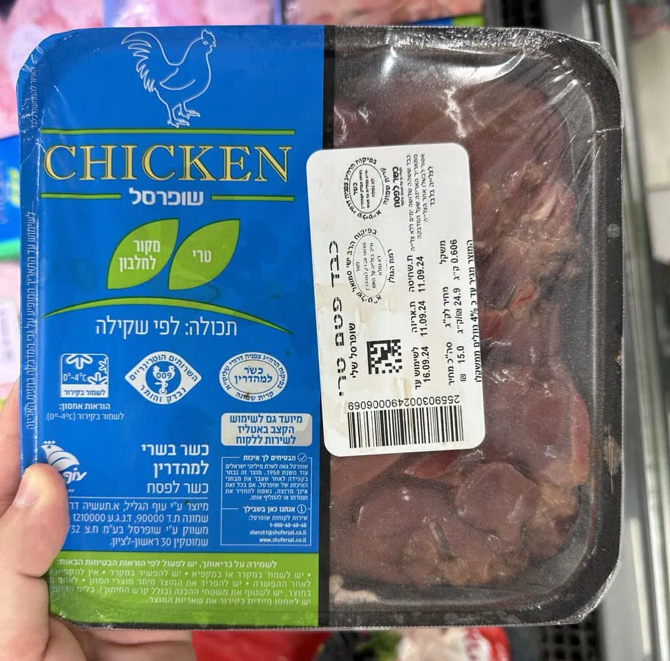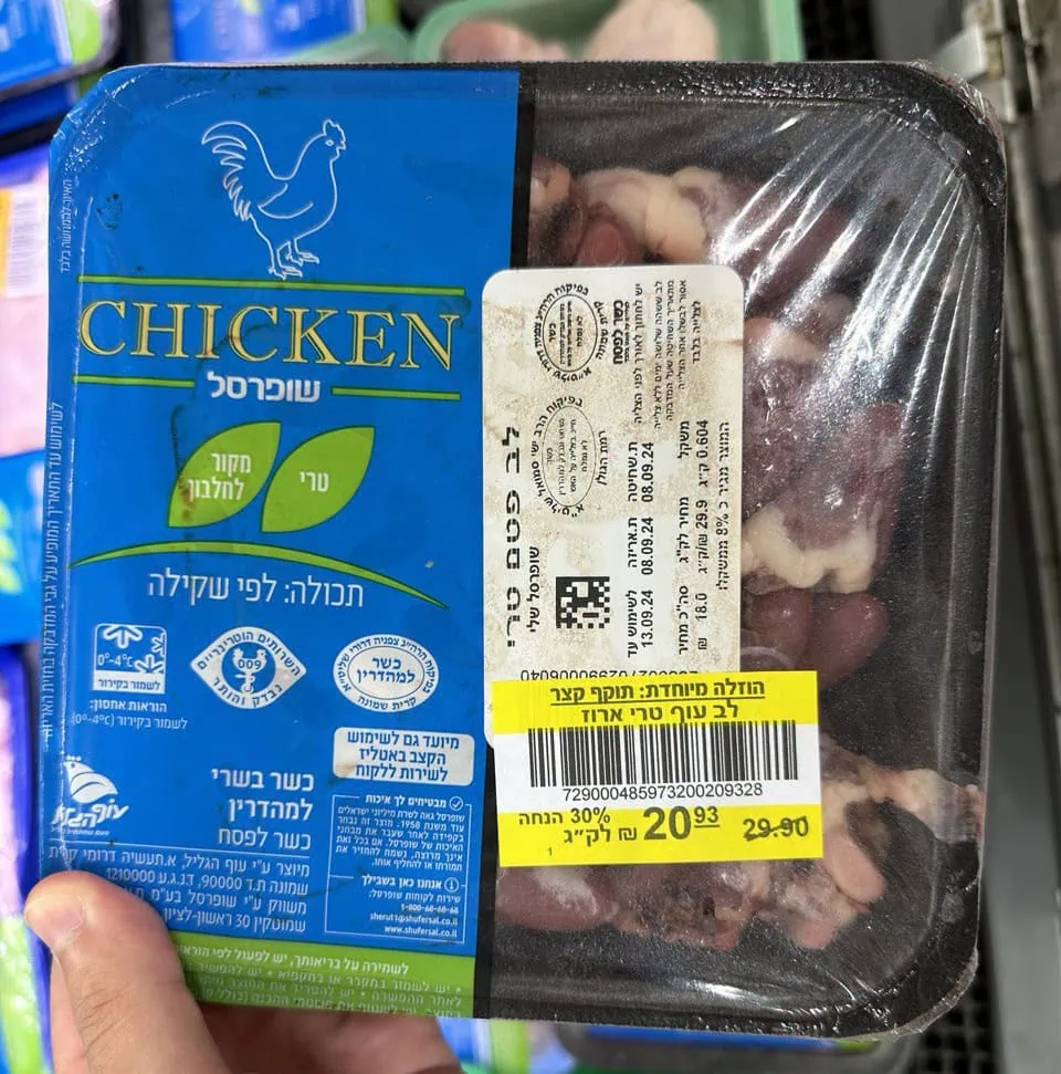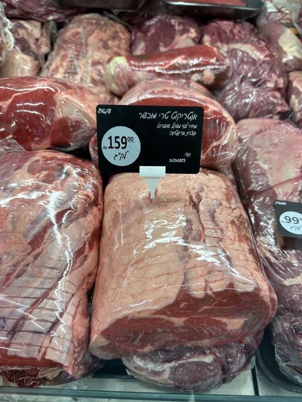Не на каждый тип мяса я подготовил изображение, потому что в обычных сетевых супермаркетах типа Шуферсаля некоторых видов просто нет. Также вы могли заметить, что ценники не соответствуют сегодняшним ценам на мясо в Израиле. Фото были сделаны в сентябре 2024г. ещё до повышения НДС.